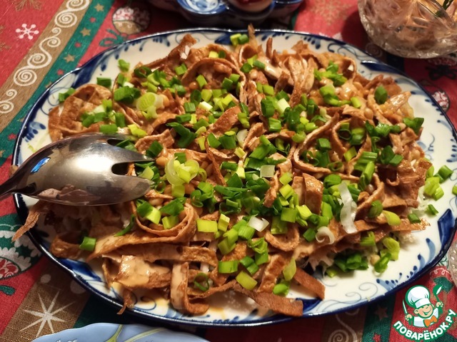 - Соевый соус (2 ст. ложки для блинчиков и 2 ст. ложки в заправку (ТМ Kikkoman)) — 4 ст. л.