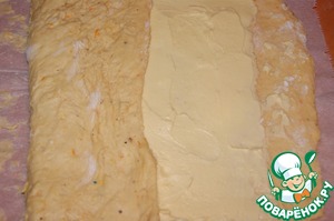 Раскатать охлажденное тесто в прямоугольник 35х45 см и толщиной 1/2 см.