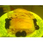 П. С. Я раскатываю тесто на пекарской бумаге, щедро присыпав ее мукой, а потом тяну за край бумаги, и переношу вместе с ней тесто на противень небольшого размера. -