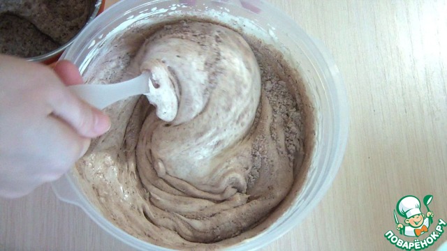 • Постепенно ввести сухую смесь во взбитые яйца с сахаром. Аккуратно перемешивая, чтобы тесто не потеряло свою воздушность.