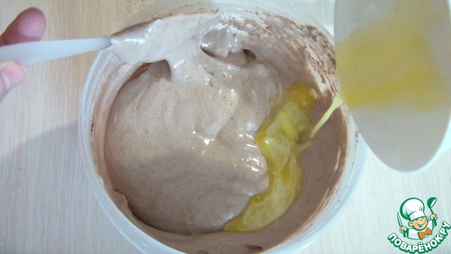 • В конце добавить растопленное сливочное масло, и аккуратно вмешать его в тесто.