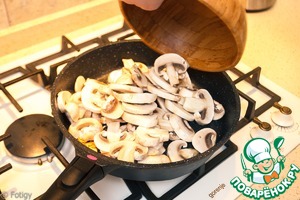 Нарезаем шампиньоны ( можно на четыре части, можно ломтиками)
