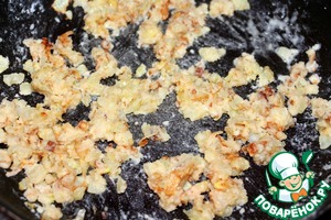• Лук обжарить, добавить муку и помешивая обжарить 2 минуты.