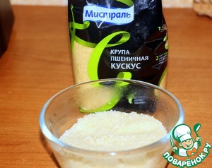 • 1/4 сткана кускуса ТМ Мистраль залить 1/2 стакана кипятка и оставить набухать на 10 минут.
