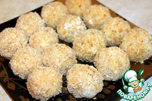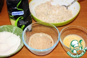 • Из фарша делаем колобки, обваливаем в муке, яйце и сухарях.
