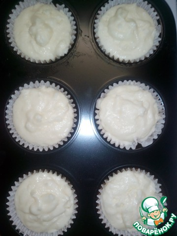 Разложить тесто по подготовленным формочкам для маффинов или капкейков, наполняя их почти доверху. Изделия поднимаются, но не сильно. Несмотря на это, из-за отсутствия пшеничной муки они олучаются очень воздушными.