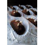 Кладём ложкой шоколадную начинку внутрь корзиночек.