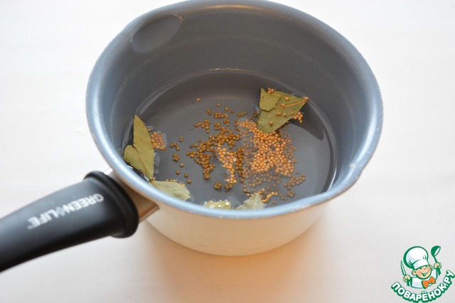 Для маринада вскипятите воду с солью, сахаром, специями и маслом. Полностью остудите.