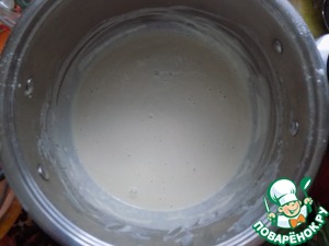 Всыпать муку до получения теста консистенции густой сметаны, все хорошо перемешать до однородности, накрыть посуду пищевой пленкой, в которой нужно проделать маленькую дырочку, и поставить опару в теплое место минут на 30-40.