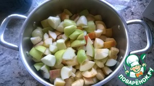 У меня 4 литровая кастрюля и в нее влезло 1, 5 кг яблок. Не надо до упора, так как мы готовим не только пюре, а напиток. Если набить кастрюлю до упора, то она будет постоянно убегать, так как при кипении яблоки поднимаются.