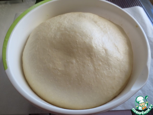 Накрыть тесто полотенцем и оставить на 2 часа. Тесто должно увеличится вдвое