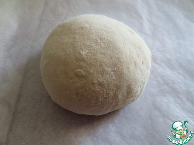 Готовое тесто выложить на рабочую поверхность, помять в течении 5 минут. -