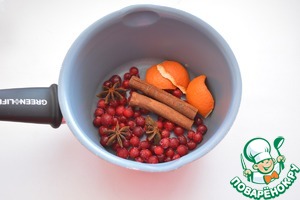 Клюкву, корицу, бадьян и цедру поместите в сотейник