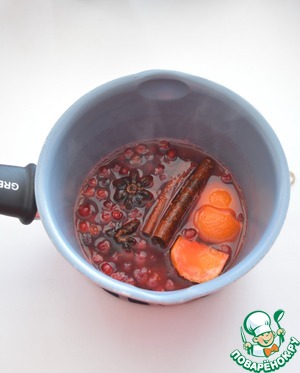 • Клюкву, корицу, бадьян и цедру поместите в сотейник