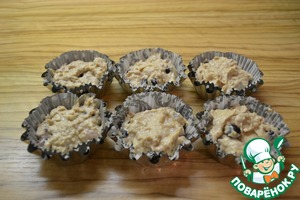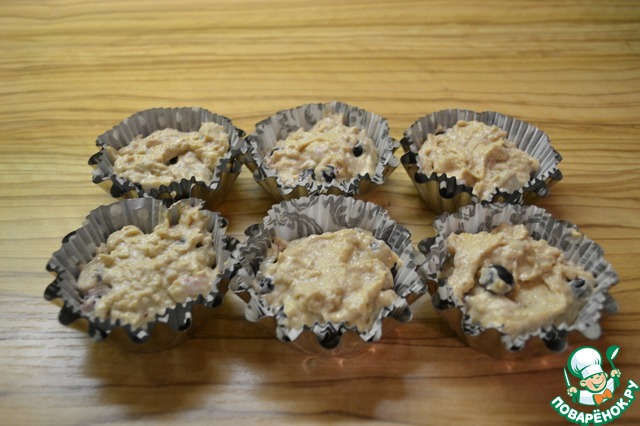 Готовое тесто выложите в формочки (если формочки не силиконовые, то предварительно смажьте маслом). Духовку разогрейте до 180-200 градусов. Выпекайте 25-30 минут.