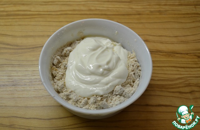 Положите йогурт и замесите тесто.