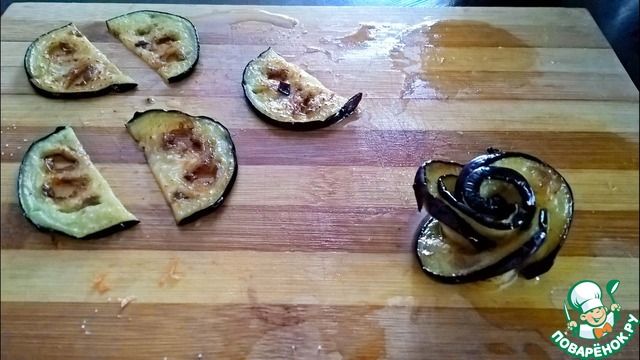 Сверху украсить розочкой из баклажана