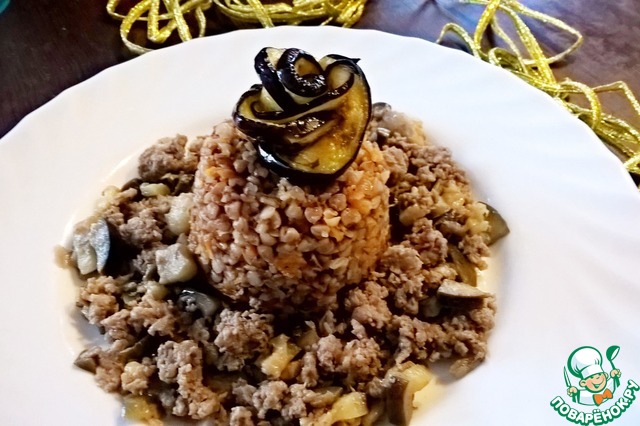 Гречка с фаршем и баклажаном