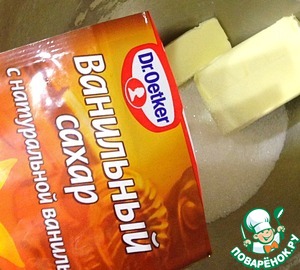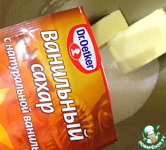 Масло взбить с сахаром и ванильным сахаром. У меня от Dr. Oetker с натуральной ванилью.