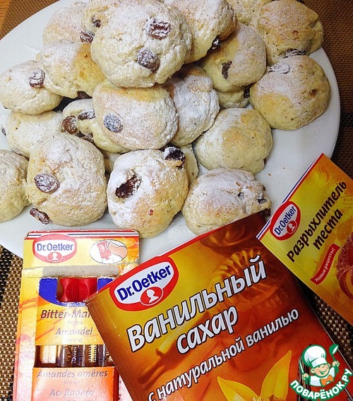 Я использую разрыхлитель Dr. Oetker. Капнула ещё пару капель миндального ароматизатора.