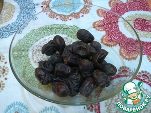 В это время можно приготовить начинку. Моем 300 г фиников (вес дан с косточкой), освобождаем их от косточек. -