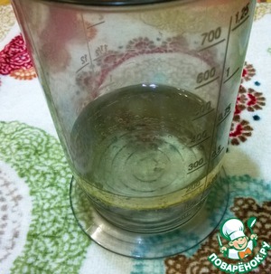 Теперь делаем швейцарское постное тесто. Ледяную воду выливаем в стакан миксера, добавляем соль и взбиваем с таким же количеством растительного масла.
