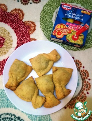Из-за особенностей нашего календаря Новый год приходится на время Рождественского поста. Предлагаю вниманию постящихся вот такое печенье. Я решила сделать его в виде мешочков с подарками и украсить с помощью сахарных карандашей «Dr. Oetker». На мой взгляд, для постного это очень вкусное печенье: хрустящее, как бы слегка слоеное, тесто, фруктовая начинка с шоколадным послевкусием. А те, кто не уверен в своих силах, может обойтись без росписи и просто присыпать «мешочки» сахарной пудрой.