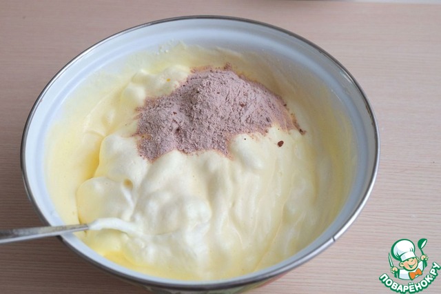 Соединить белковое тесто и желтково-сметанную смесь.