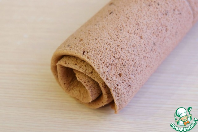 Рецепт «Шоколадный рулет с ванильным кремом»: