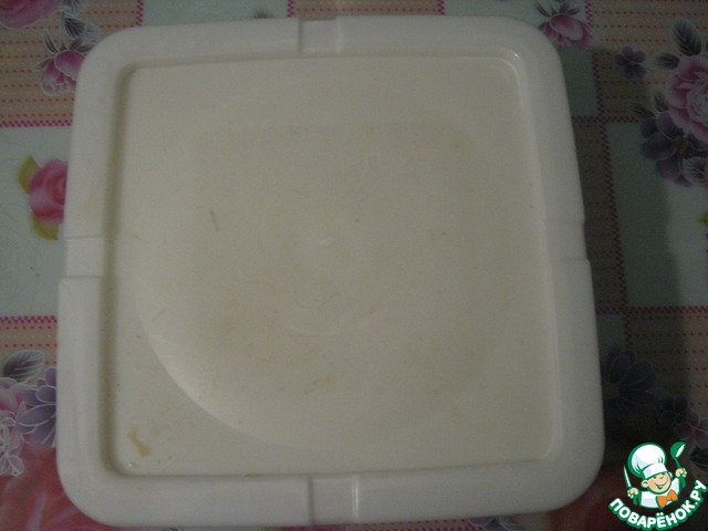 Закрываю крышкой и ставлю в холодильник не менее чем на 6 часов, но лучше на ночь для пропитывания.Ёмкость с крышкой удобна тем, что на неё можно будет поставить что -нибудь в холодильнике, так как она всё-таки занимает много места.