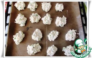 Отделяем по 1 столовой ложке теста и выкладываем на противень, застеленный пергаментом.