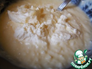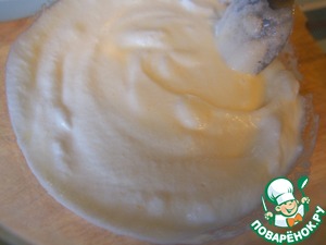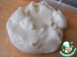 Отделяем белки от желтков (яйца берём охлажденные). Желтки взбиваем с сахаром. Белки взбиваем на маленькой скорости до белых пиков (когда при переворачивании ёмкости они не выливаются).