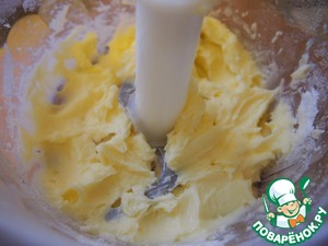 Взбиваем размягченное сливочное масло с сахарной пудрой и ванилином.