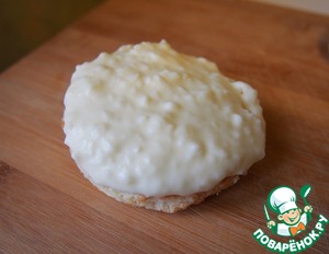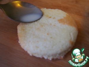Я пропитала каждый кружок жидкими сливками, можно использовать сироп по вкусу.
