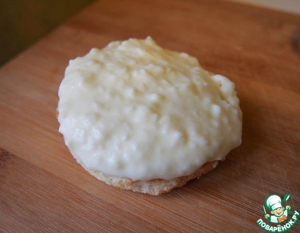 Каждый бисквит густо смазываем кремом и накрываем вторым кружком.