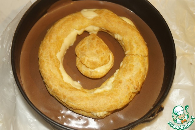 Хочу предложить потрясающий шоколадный торт с прослойкой в виде заварного кольца с ванильным кремом.