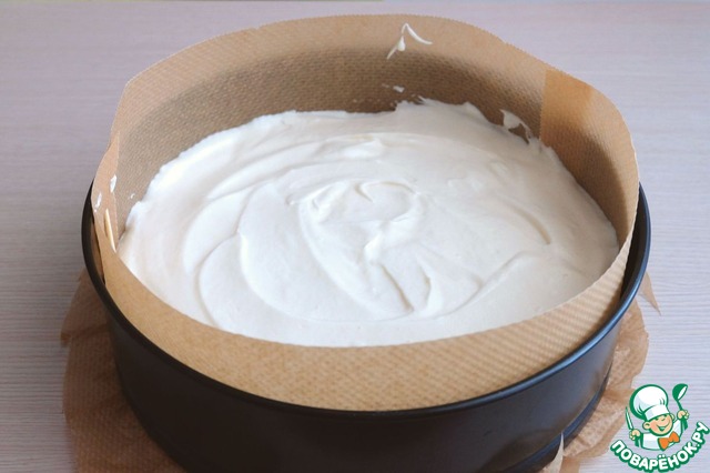 Бисквит остудить, разрезать на 3-4 бисквитных блинчика. Бисквит, по желанию, можно выровнять при помощи кондитерского кольца.