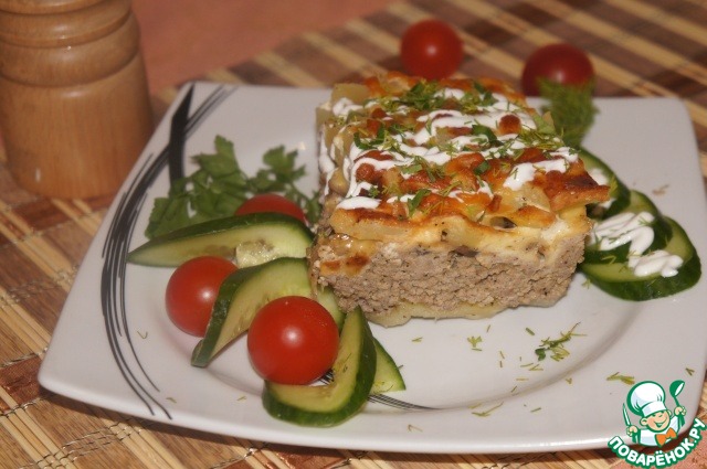 Рецепт «Мясная запеканка с картофелем и грибами»: