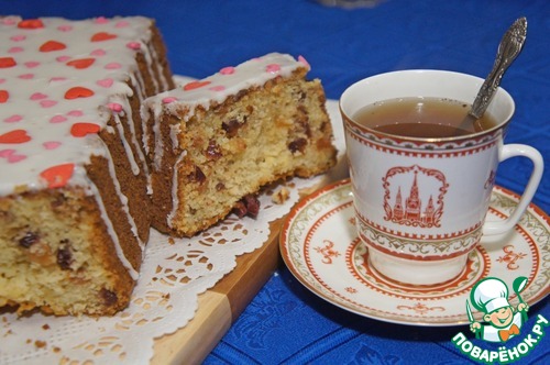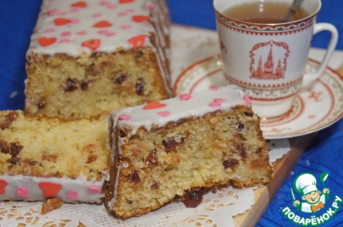 Выложить в форму (у меня продолговатая, 30х11х6 см) и выпекать при 189*С до готовности, около часа. Затем выключить духовку и подержать кекс в ней еще минут 5-10. Остывший кекс можно покрыть глазурью или посыпать сахарной пудрой, а можно оставить и так, он вполне самодостаточен.