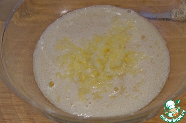 Из лимона удалить все косточки и измельчить в блендере или натереть на терке вместе с кожурой. Добавить лимонную массу к масляно-яичной смеси, перемешать.