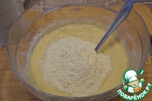 Затем кукурузную муку и тщательно перемешать тесто.