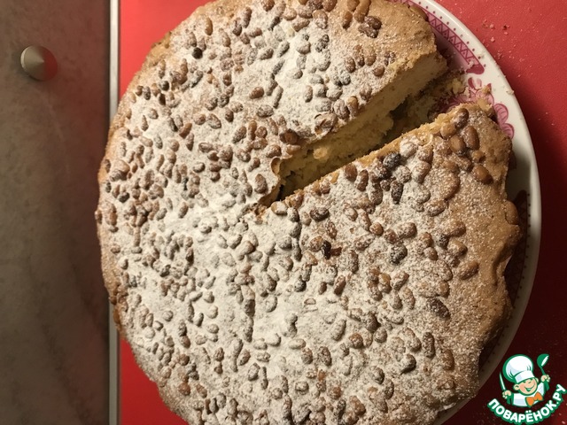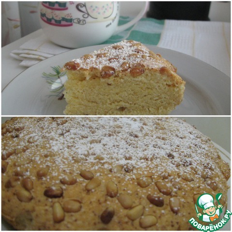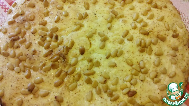 Сверху разложить кедровые орехи. -