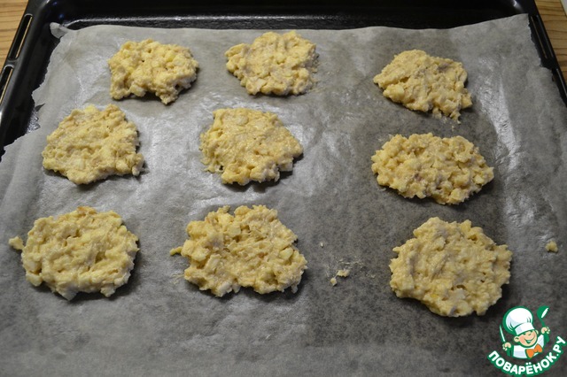 Столовой ложкой выложить тесто на противень на приличном расстоянии друг от друга. Выпекать 20 минут, в разогретой до 180°С духовке.