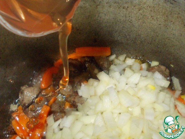 При готовке плова лучше пользоваться деревянной ложкой. Моя бабуля всегда говорила, что плов любит дерево... -