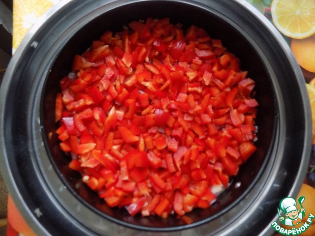Далее идет слой мелко нарезанного перца.