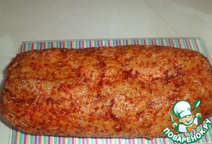 С остывшего рулета снять пленку. Для привлекательного вида, смазать паприкой, смешанной с растительным маслом.