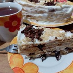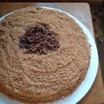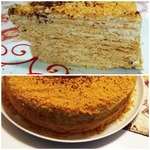 [+5]Пекла я лет 8 медовик,а тут Ваш, да с коньячком...нам понравились коржи!!! Шоколад и чернослив мы оставили на потом. Сметанным кремом с грецким орехом промазала.