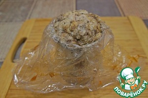 Тщательно утрамбовывая его толкушкой, завязать его ниткой или скрепить специальной клипсой.