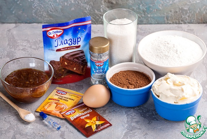- Глазурь (готовая глазурь "Темный шоколад" от Dr. Oetker) — 1 пач.