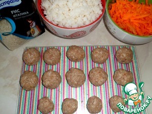 Отварить рис ТМ Мистраль Италика в подсоленной воде, не промывать. Натереть морковь на крупной терке. Накатать из фарша шарики по 15-20г.